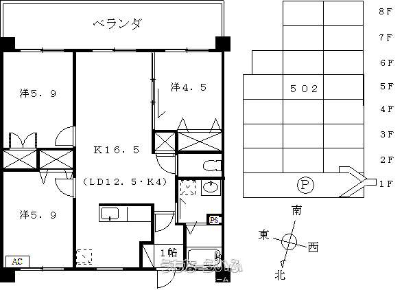 | 間取り | 3LDK ( 洋4.5 洋5.9 洋5.9 LDK16.5) | ||