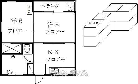 | 間取り | 2DK ( 洋6 洋6 DK6) | ||