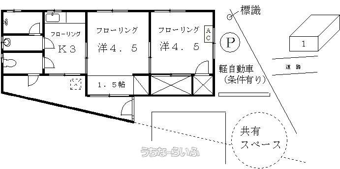 | 間取り | 2K ( 洋4.5 洋4.5 K3) | ||