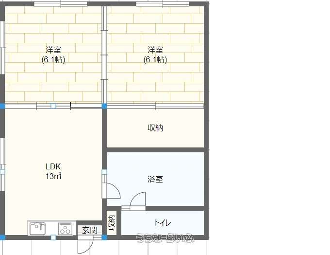 間取り | 2LDK ( 洋6 洋6 LDK8) | ||