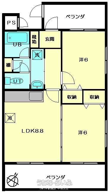 | 間取り | 2LDK ( 洋6 洋6 LDK8.8) | ||
