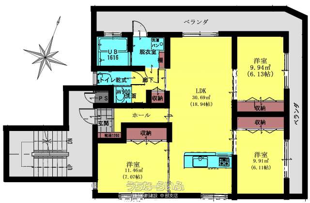| 間取り | 3LDK ( 洋6.1 洋6.1 洋7 LDK18.9) | ||