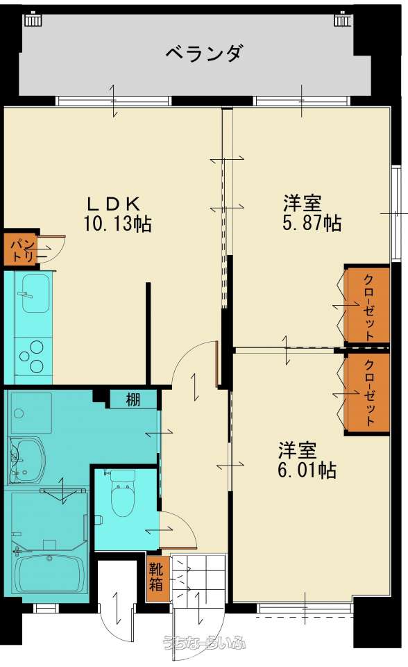 | 間取り | 2LDK ( 洋6 洋5.8 LDK10.3 ※LDK(10.31帖)、洋室(5.87帖・6.01帖)) | ||