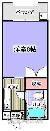 | 間取り | 1K ( 洋8 K2) | ||