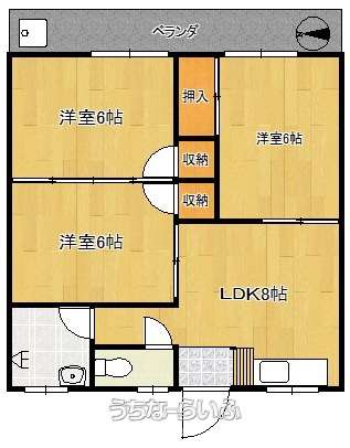 | 間取り | 3DK ( 洋6 洋6 和6 DK8) | ||