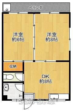 | 間取り | 2DK ( 洋6 洋8 DK8) | ||