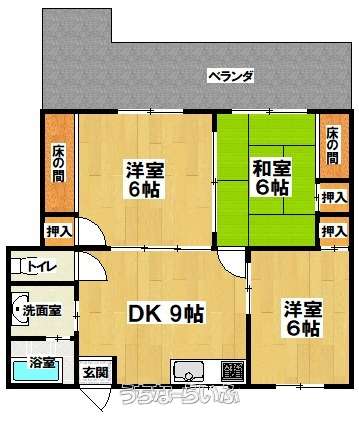 | 間取り | 3DK ( 洋8 洋6 和6 DK9) | ||