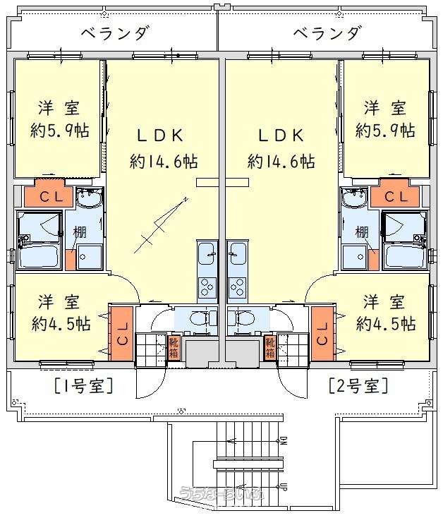 | 間取り | 2LDK ( 洋4.5 洋5.9 LDK14.6) | ||