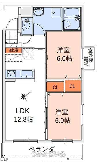 | 間取り | 2LDK ( 洋6 洋6 LDK12.8 ※対面キッチン) | ||