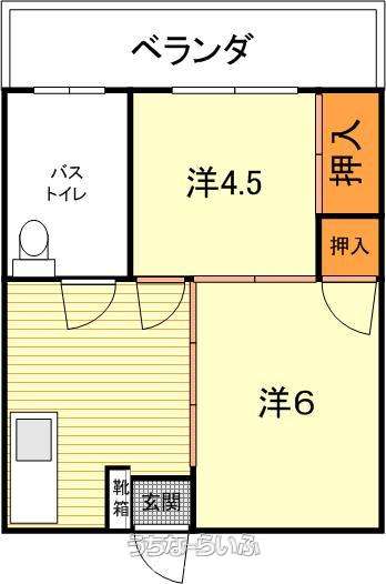 | 間取り | 2DK ( 洋6 洋4.5 DK6) | ||