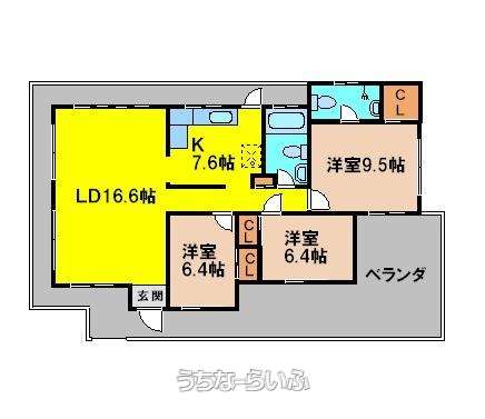 間取り | 3LDK ( 洋9.5 洋6.4 洋6.4 LDK24.2) | ||