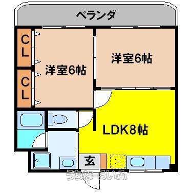 | 間取り | 2LDK ( 洋6 洋6 LDK8) | ||