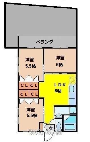 | 間取り | 3LDK ( 洋6 洋5.5 洋5.5 LDK8) | ||
