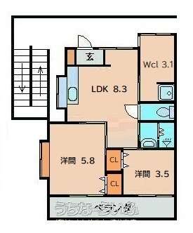 | 間取り | 2LDK ( 洋5.8 洋3.5 LDK8.3) | ||