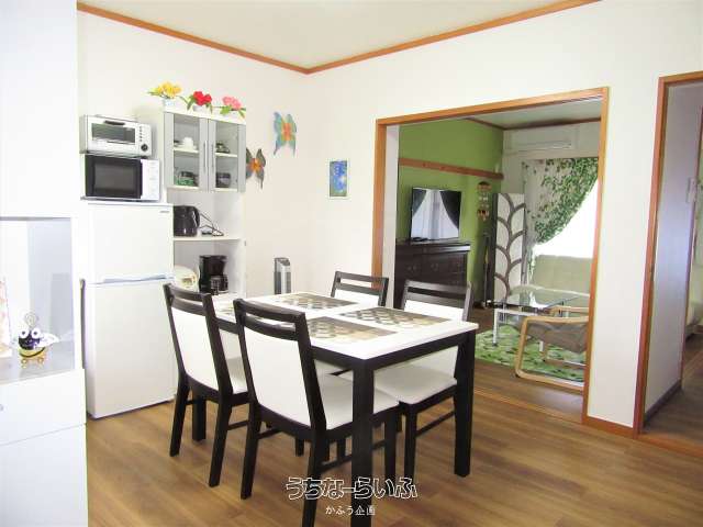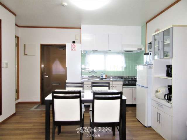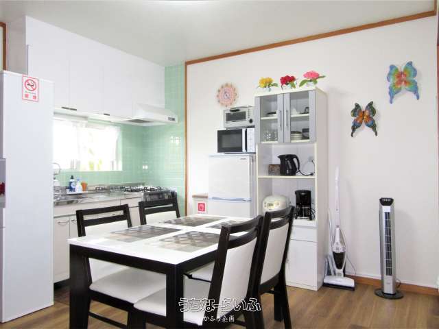 | 設備備考 | ☆家具類:シングルベッド2台、ソファベッド1台、エアーベッド1台、食卓テーブルセット、パソコンデスクセット、鏡付ドレッサー、キッチンボード、 ☆家電:エアコン2台、TV、洗濯乾燥機、冷蔵庫、電子レンジ、炊飯器、電気ケトル、コーヒーメーカー、掃除機、ヘアードライアー、アイロン、 ☆生活用品:鍋類、食器類、洗濯用洗剤類、食器用洗剤、シャンプー、リンス、ボディーソープ等☆寝具類レンタル料込み |
