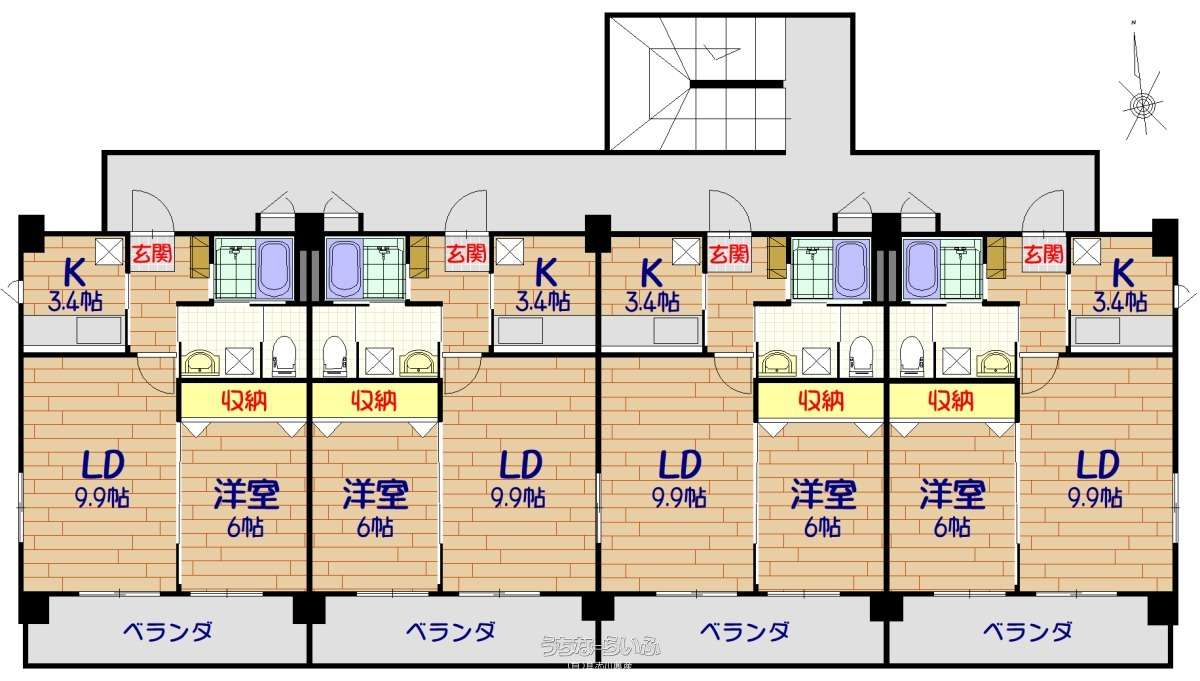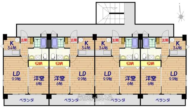 | 間取り | 1LDK ( 洋6 LDK13.3 ※LD9.9 ・K3.4) | ||