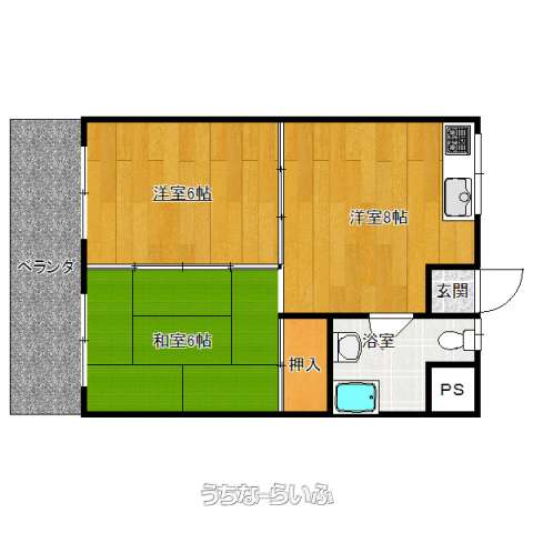 | 間取り | 2DK ( 洋6 和6 DK8) | ||