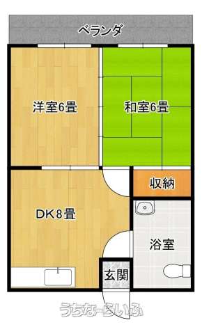 | 間取り | 2DK ( 洋6 和6 DK8) | ||