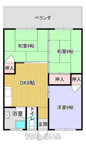 | 間取り | 3DK ( 洋6 和6 和6 DK8) | ||