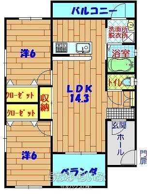 | 間取り | 2LDK ( 洋6 洋6 LDK14.3) | ||