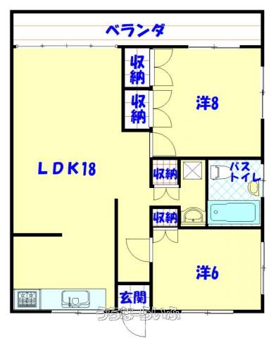 間取り | 2LDK ( 洋6 洋8 LDK18) | ||