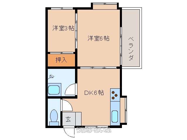 | 間取り | 2DK ( 洋6 洋3 DK6) | ||