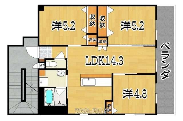 | 間取り | 3LDK ( 洋5.2 洋5.2 洋4.8 LDK14.3) | ||
