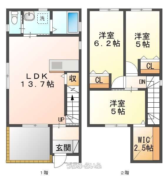 | 間取り | 3LDK ( 洋6.2 洋5 洋5 LDK13.7) | ||