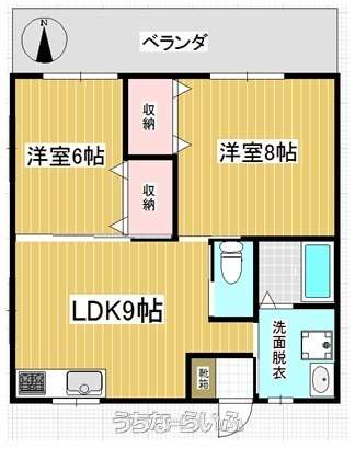 | 間取り | 2DK ( 洋6 洋8 DK9) | ||