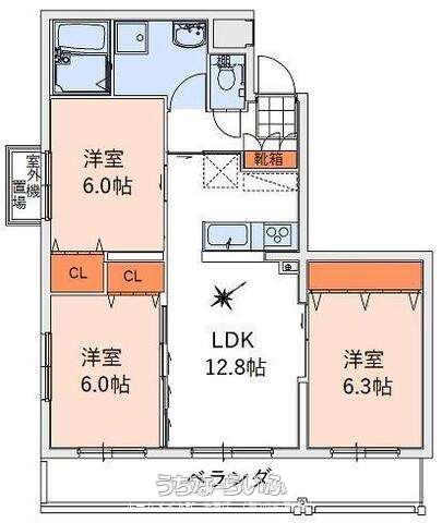 | 間取り | 3LDK ( 洋6.3 洋6 洋6 LDK12.8) | ||