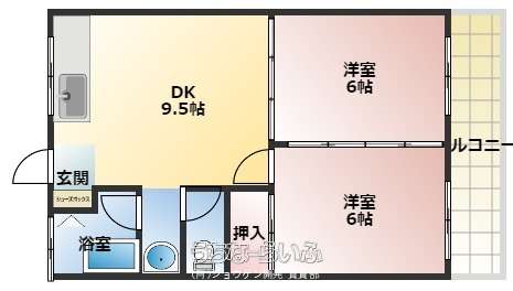 | 間取り | 2DK ( 洋6 洋6 DK9.5) | ||