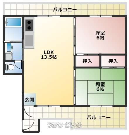 | 間取り | 2LDK ( 洋6 和6 LDK13) | ||