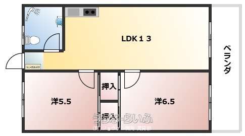 | 間取り | 2LDK ( 洋6.5 洋5.5 LDK13) | ||