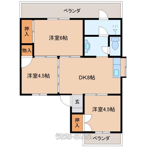| 間取り | 3LDK ( 洋4.5 洋4.5 和6 LDK8) | ||