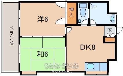| 間取り | 2DK ( 洋6 和6 DK8) | ||
