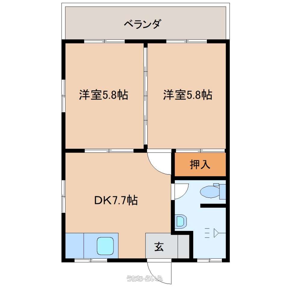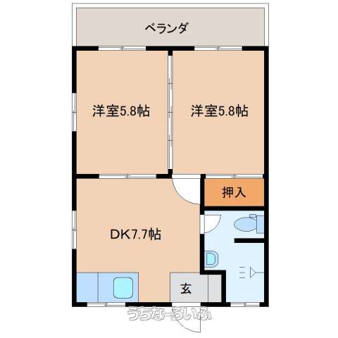 | 間取り | 2DK ( 洋5.8 洋5.8 DK7.7) | ||