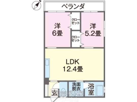| 間取り | 2LDK ( 洋6 洋5.2 LDK12.4) | ||