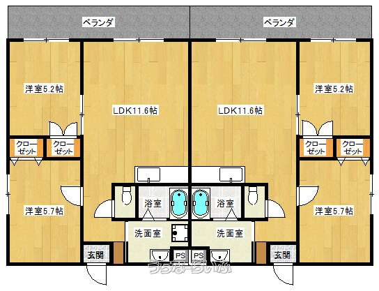 | 間取り | 2LDK ( 洋5.2 洋5.7 LDK11.6) | ||