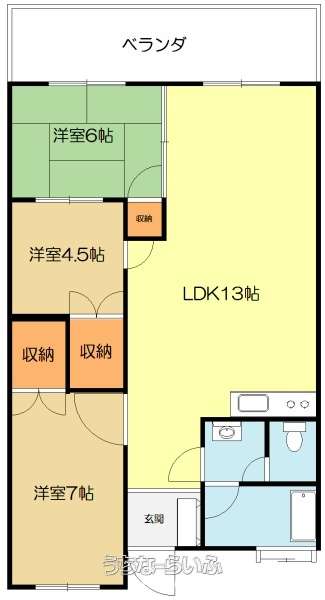 | 間取り | 3LDK ( 洋7 洋4.5 和6 LDK13) | ||