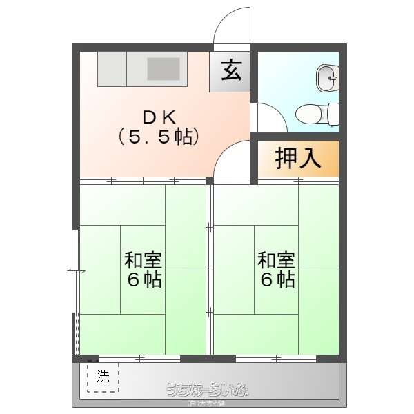| 間取り | 2DK ( 和6 和6 DK5.5) | ||