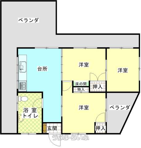 | 間取り | 3DK ( 洋6 洋6 洋6 DK8) | ||