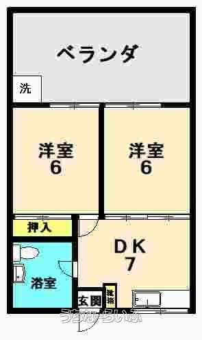 | 間取り | 2DK ( 洋6 洋6 DK7) | ||