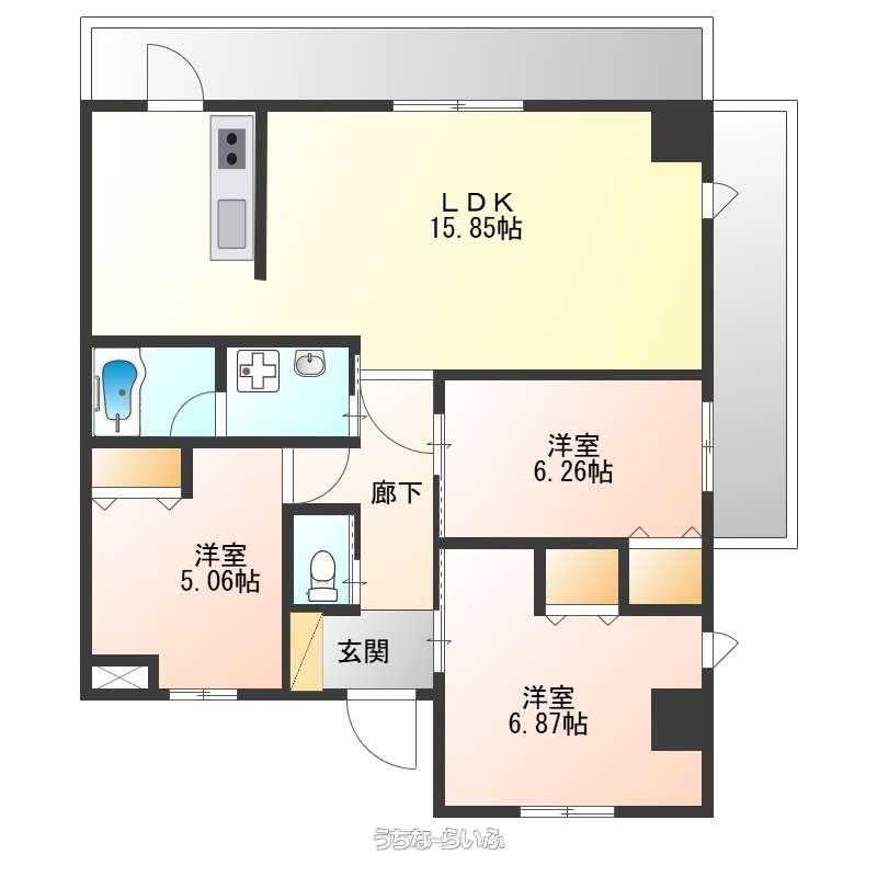 | 間取り | 3LDK ( 洋6.2 洋6.8 洋5 LDK15.8) | ||