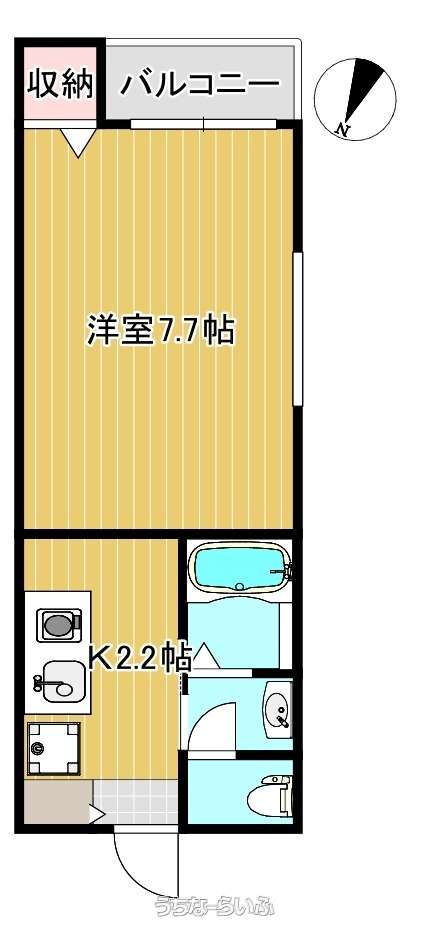 | 間取り | 1K ( 洋7.7 K2.2) | ||