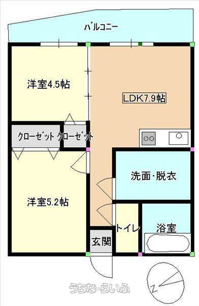 | 間取り | 2LDK ( 洋4.5 洋5.2 LDK7.9) | ||