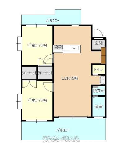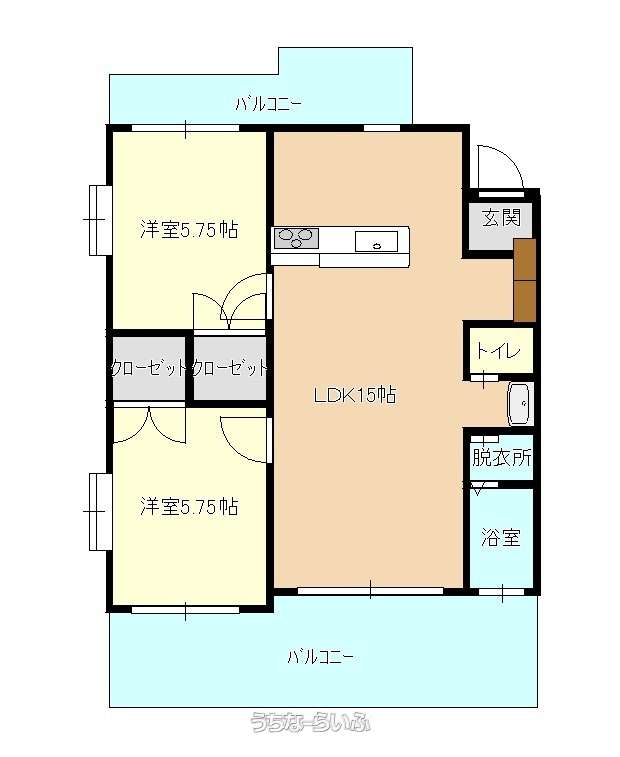 | 間取り | 2LDK ( 洋5.8 洋5.8 LDK15 ※カウンターキッチン) | ||