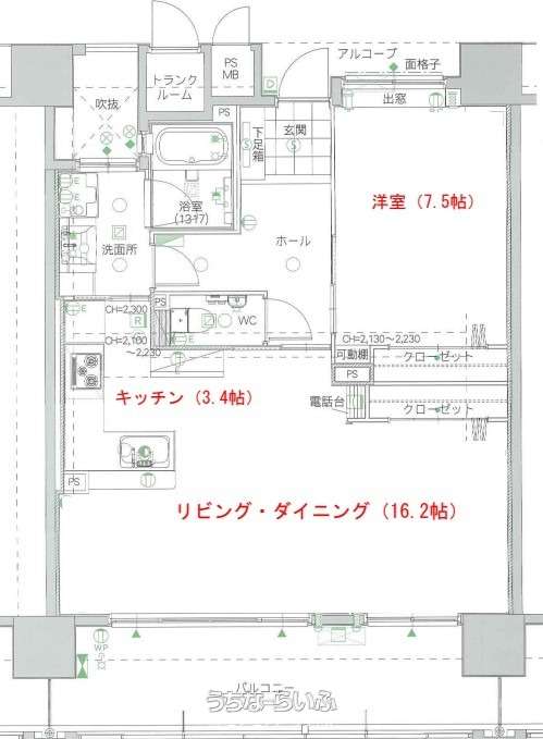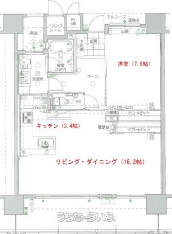 | 間取り | 1LDK ( 洋7.5 LDK16.2 ※トランクルーム有) | ||