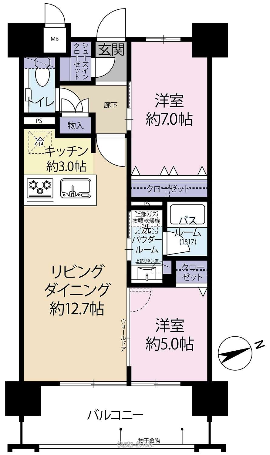 間取り | 2LDK ( 洋7 洋5 LDK15.7) | ||