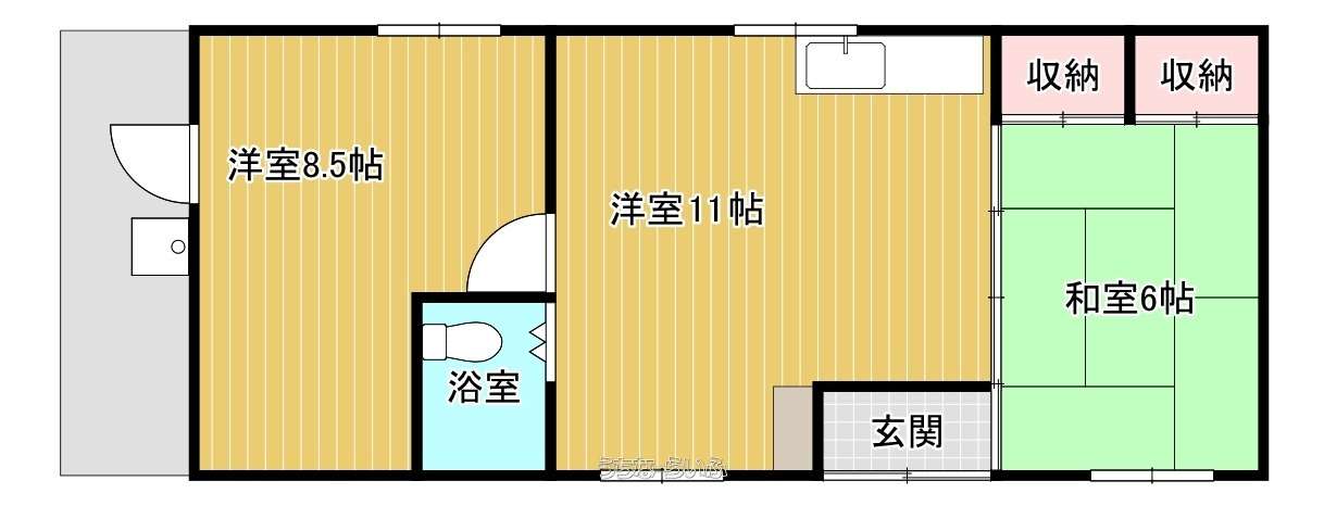 | 間取り | 2LDK ( 洋8.5 洋6 LDK11) | ||