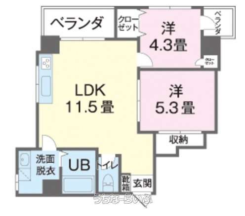| 間取り | 2LDK ( 洋5.3 洋4.3 LDK11.5) | ||
